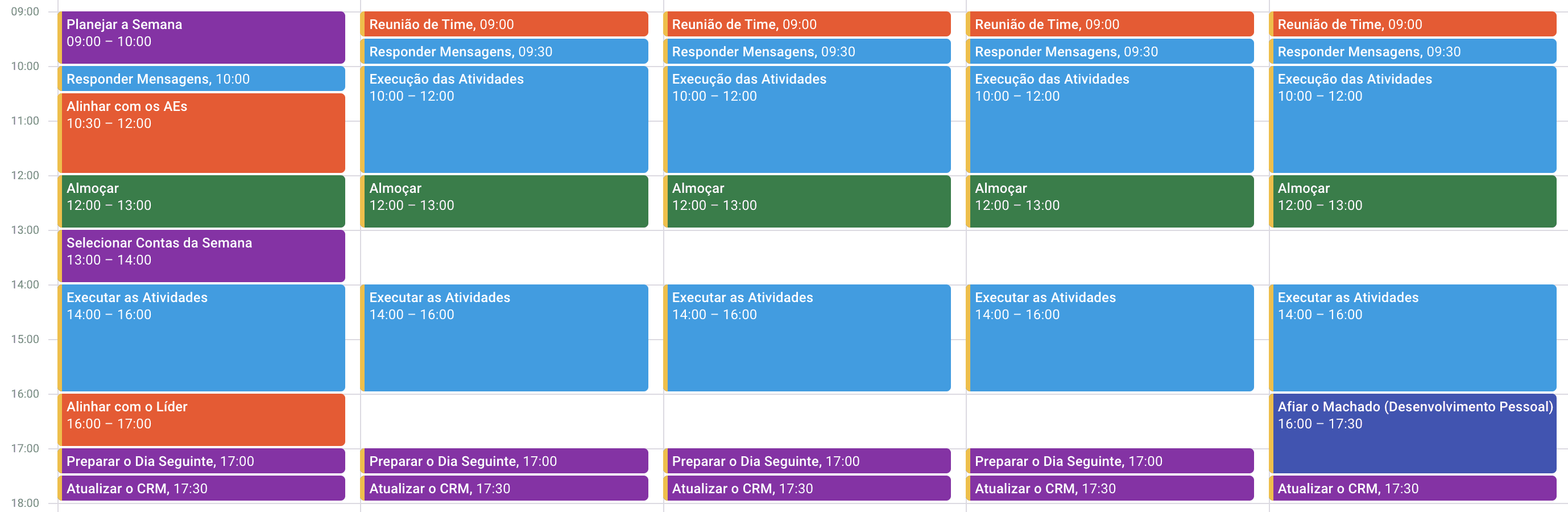 Compartilho com vocês um exemplo da semana ideal para um SDR/BDR.